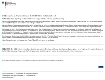 Screenshot aus dem NIS2-Betroffenheitstool | © Bundesamt für Sicherheit in der Informationstechnik